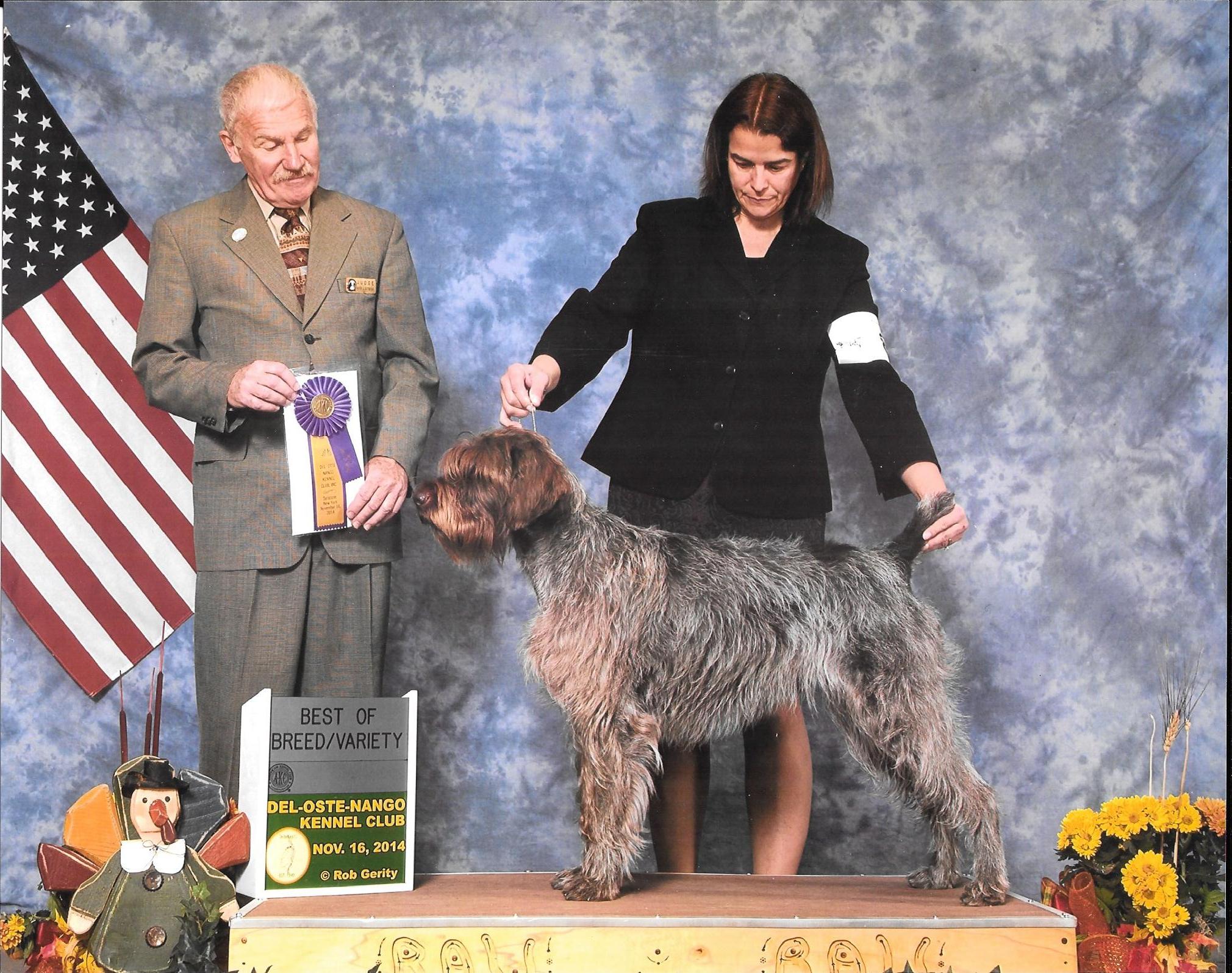 Ch Wet Acres My Fur Lady She finished by going BOB over her Group Placing brother.